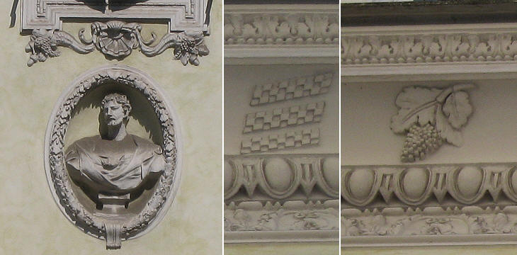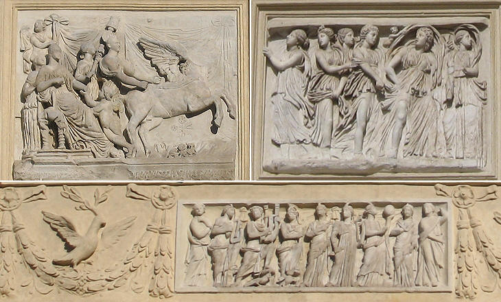 (below) stucco with the Pamphilj heraldic symbol and relief portraying the Muses