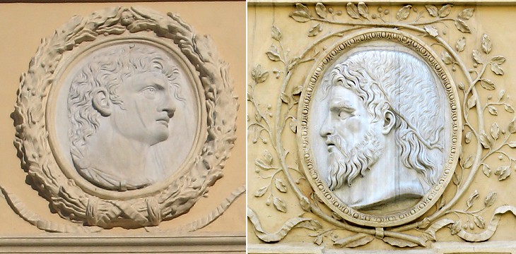 (left) Relief believed to portray Alexander the Great; (right) another round relief