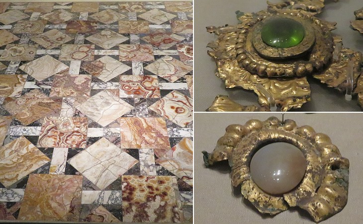 Musei Capitolini (from "Horti Lamiani"): (left) marble floor; (right) gilt metal decorations of furniture