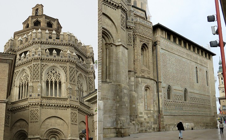 La Seo: (left) cimborio (lantern tower); (right) apse and wall of Parroquieta