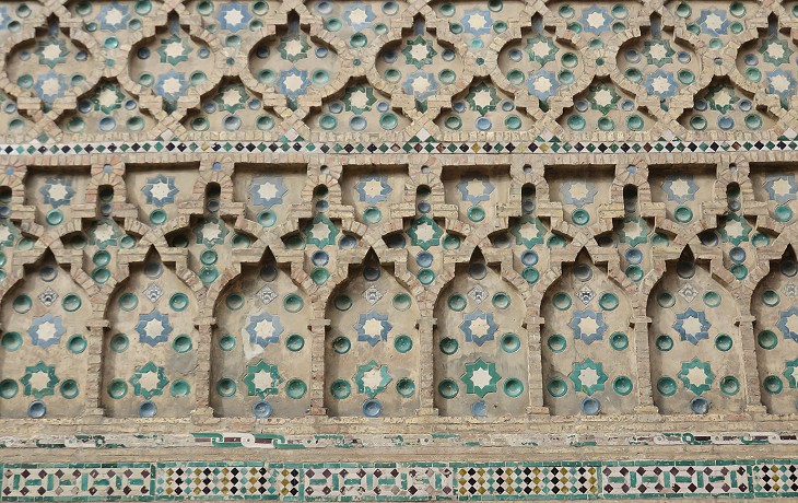 The Mudéjar architecture of Aragon is, on account of the formal solutions adopted and the techniques and materials of construction employed, a specific and extraordinary legacy. (..) Decorative motifs from a great variety of traditions can be seen in these monuments. (..) Thus, we can identify in these Aragonese monuments the rhombus-shaped mouldings (sebqa), stars, angled and interlaced brick friezes, arrows, lobed and multi-grooved arches, as well as elements of construction characteristic of Islamic art such as alfiz panels, decorated eaves, and lattice work.