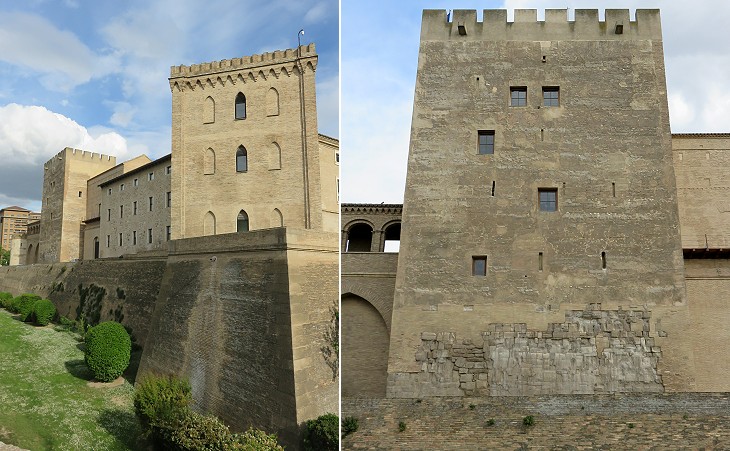 Aljaferia: (left) western side; (right) Torre del Trovador