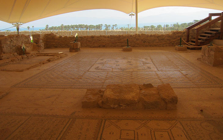 It was generally thought that the Romans had killed or evicted all the Jews living south of Jerusalem after the Second Jewish Revolt. In 1965 the accidental discovery of a synagogue built in the early IIIrd century at Ein Gedi on the Dead Sea shore north of Masada indicated that some Jewish communities managed to remain in the region and became wealthy enough to have a nicely decorated synagogue.