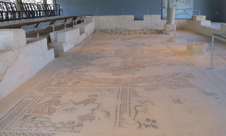 Overall view of the mosaic of the synagogue unearthed near the theatre of the town