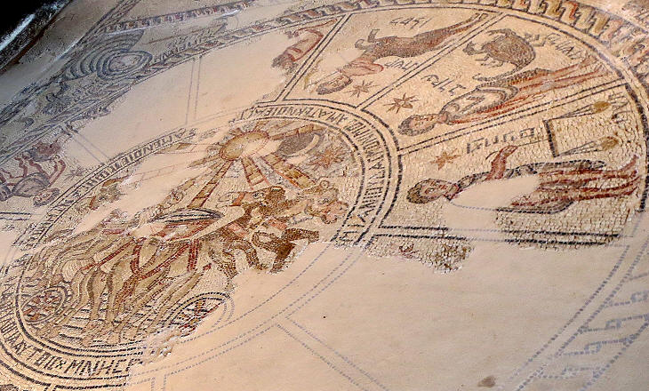 The life of farmers was marked by the tasks they had to perform during the various periods of the year and thus the villagers of Bet Alpha chose a mosaic depicting the Four Seasons and the signs of the Zodiac to decorate the floor of their synagogue. Their days began at dawn and ended at sunset and therefore they had the Chariot of the Sun portrayed in a central medallion.