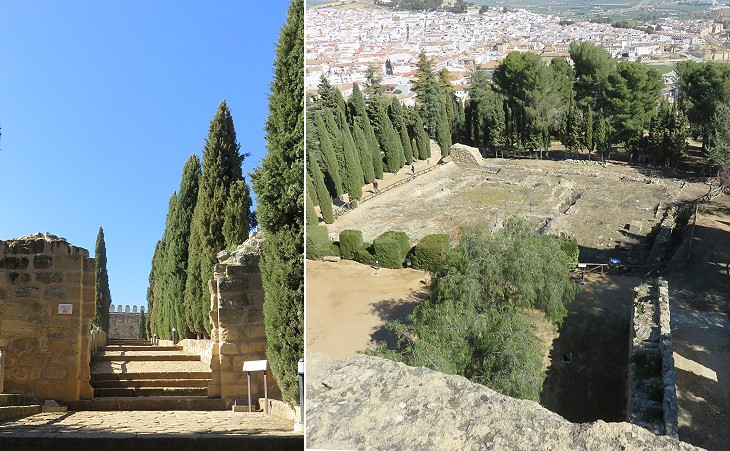 Alcazaba (citadel): (left) access to the fortress; (right) evidence of old buildings inside it