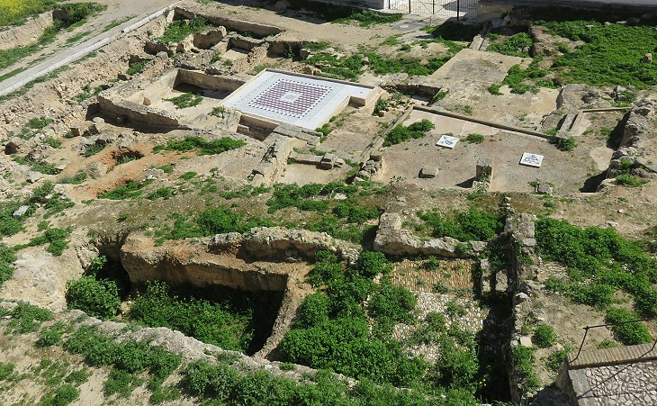 Roman baths seen from the terrace near Santa Maria la Mayor; the image used as background for this page shows a head of Ocean, at the centre of the mosaic