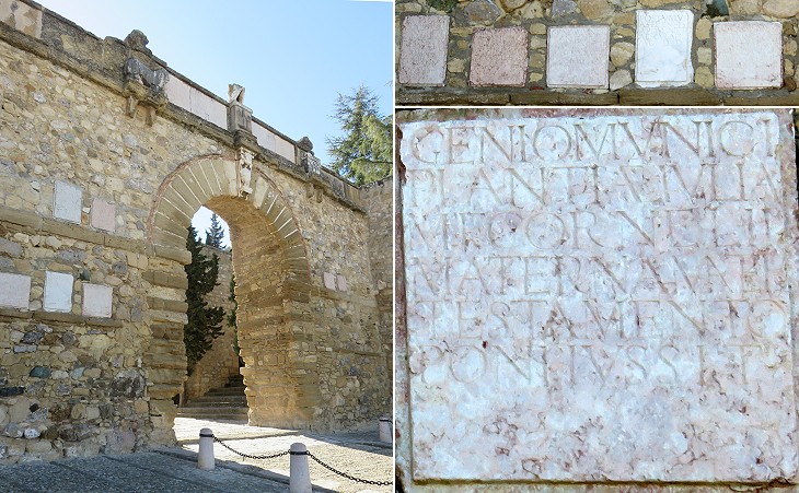 (left) Arco de los Gigantes; (right-above) Roman inscriptions; (right-below) "Genio Municipi(i) Antik(ariensis)