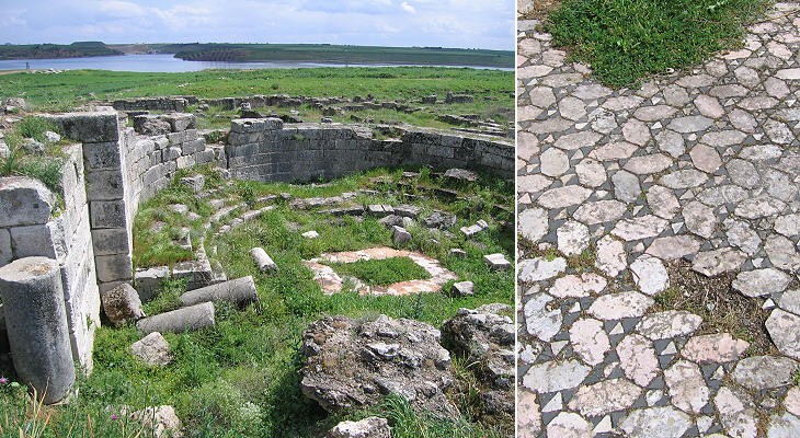 Eastern Cathedral: (left) apse; (right) detail of an "opus sectile" (marble inlays, see those at Villa Adriana) floor; see some of its mosaics in Brussels