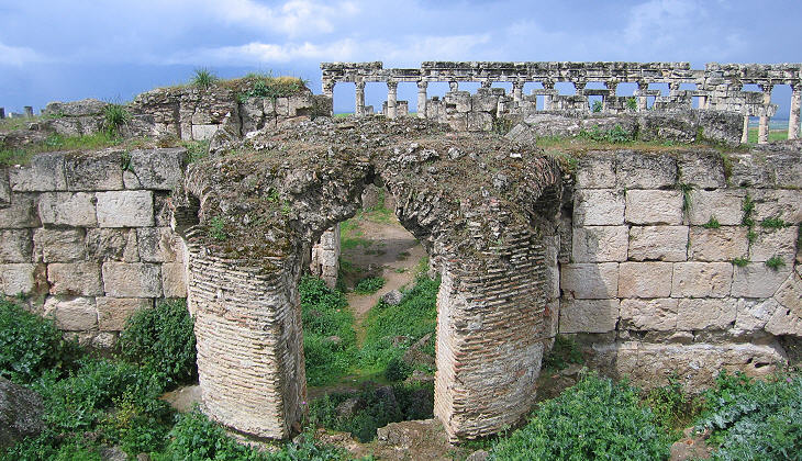 In the late IVth century Apamea became the see of an important bishopric; a shrine was built to house a most precious relic: the True Cross. After the earthquakes of the VIth century a new complex of Christian buildings including a cathedral replaced the shrine.