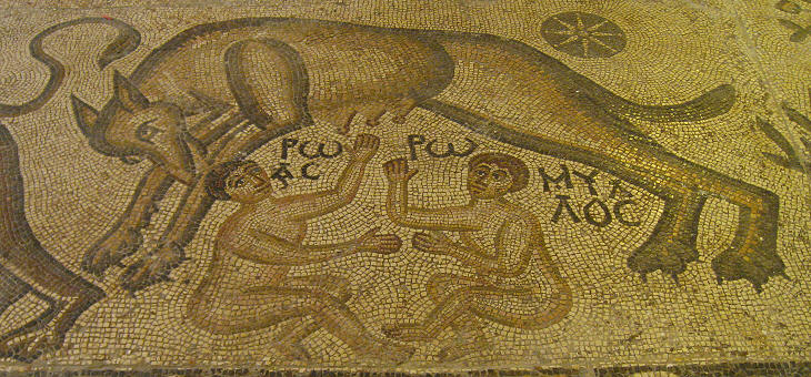 Museum of Maaret an-Nouman: mosaic portraying Romulus (right) and Remus (left) dated 511