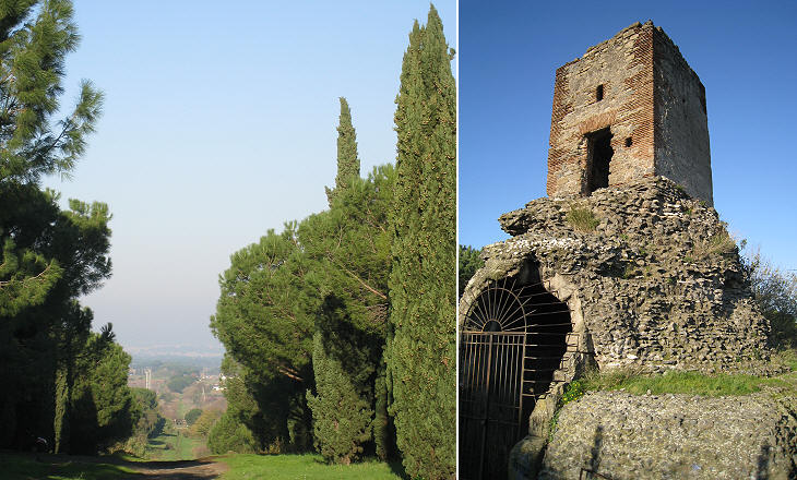 The last section of Via Appia Antica is marked by the ruins of a tomb which has the size of a small hill.