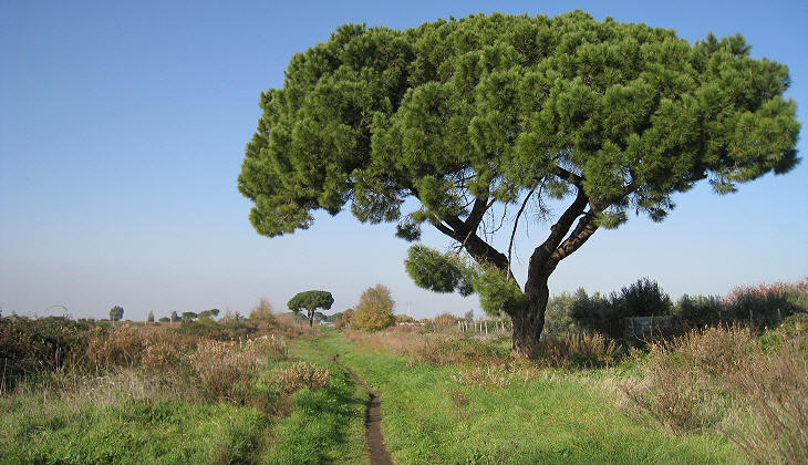 After crossing Via di Fioranello, which leads to the nearby Ciampino Airport, Via Appia Antica gets narrower and is unpaved. Fragments of monuments are scattered around rather than being arranged at the sides of the road.