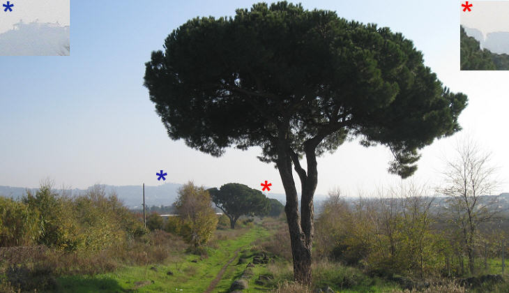 View towards the Alban Hills; in the insets Castelgandolfo (left) and Via Appia
