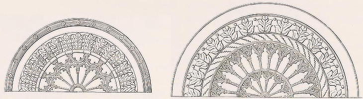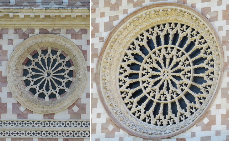 Rose windows by Edward Lear: (left) above the right small portal; (right) above the central portal