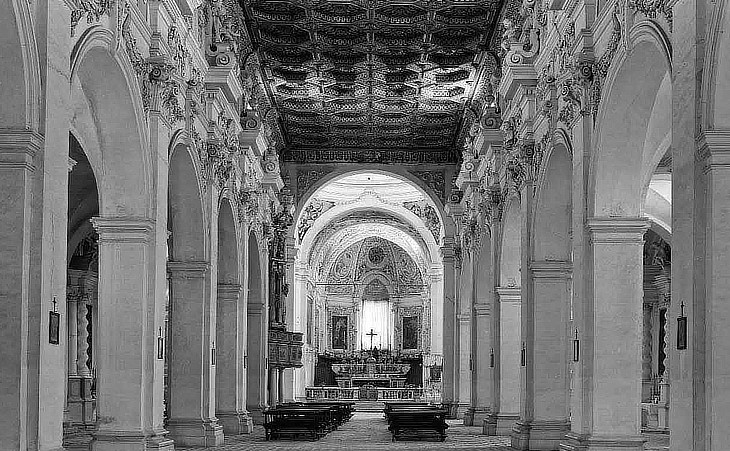 The façade alone remains of the original Gothic building, all the rest being a subsequent addition in the Roman style. The interior of the church has a rich roof, and the floor contains several monuments to bishops of the Celestin order, chiefly of the 16th century. The choir is Gothic altered into the classic style, the body of the building was ruined by the earthquake of Feb. 2. 1703. Murray