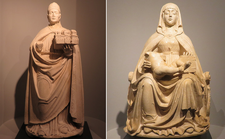 Museo Nazionale d'Abruzzo (MUNDA): XVth century statues of Pope Celestine V holding the City of L'Aquila and of the Virgin Mary from the façade of S. Maria di Collemaggio