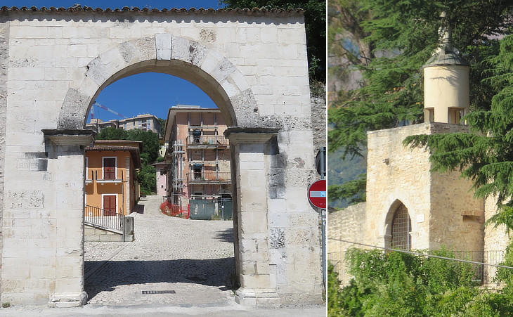Two major earthquakes (in 1703 and 2009) and many minor ones damaged the walls which surrounded the town. The section near Porta Rivera was carefully restored after the last earthquake in order to bring it back to the aspect it had when it was built in the late XIIIth century.