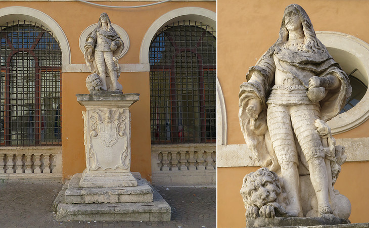 Monument to Charles II, King of Spain (ca 1675) behind Palazzo Margherita