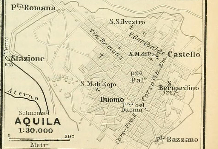 A simple plan of L'Aquila from "Karl Baedeker - Italy; handbook for travellers - 1900"