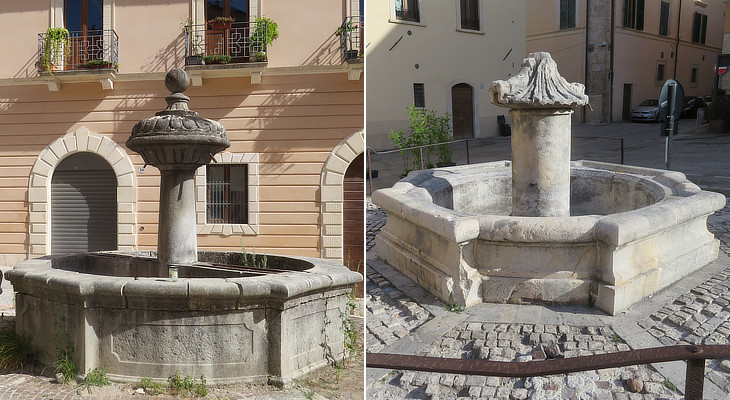 Fountains: (left) near S. Marciano (XVth century); (right) near S. Maria di Paganica (XVIIth century)