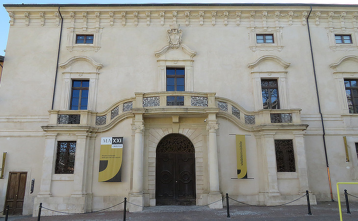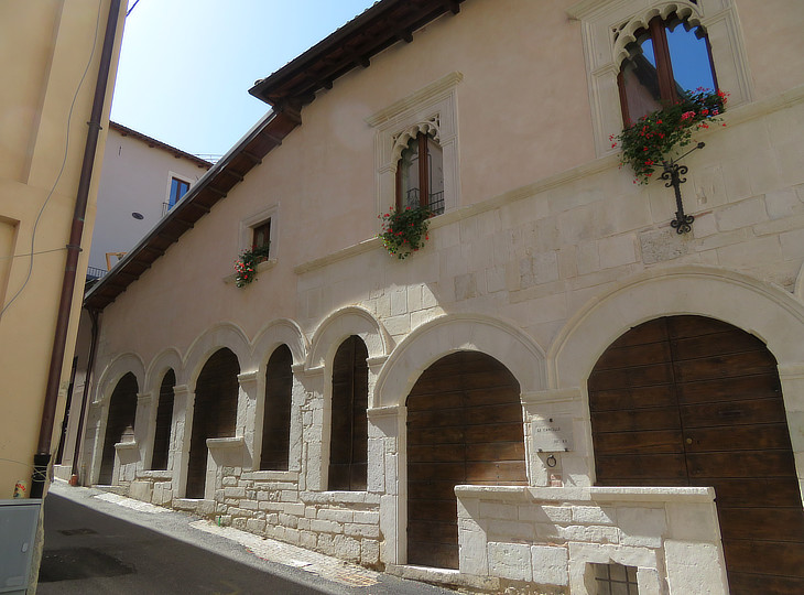 This palace was designed after the 1703 earthquake on the basis of a project by Francesco Fontana, son of Carlo Fontana, the leading architect in Rome. Its construction however took a very long time during which the Ardinghelli family became extinct. The fact that it had been acquired by the Italian State led to its rapid restoration after the 2009 earthquake and it now houses a section of MAXXI, the Roman Museum of Arts of the XXIth century.