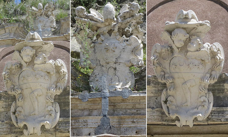 Coats of arms of Pope Clement XI (above) and of Bishop Giovanni Giacomo Bonaventura Gambi (below)