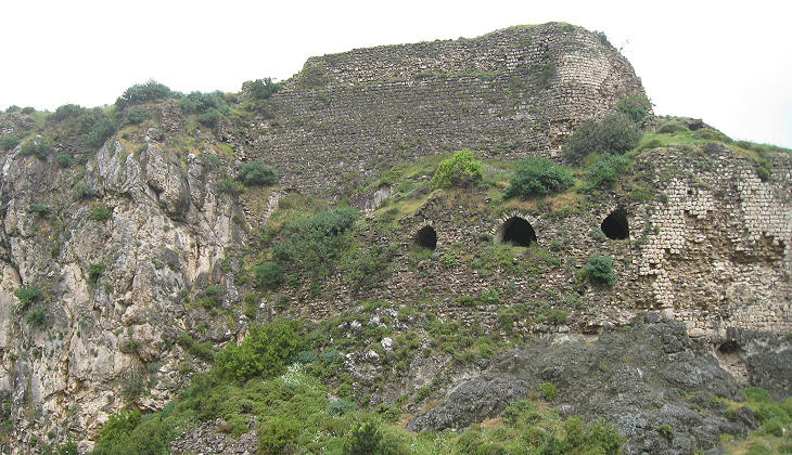 Mount Amanus (today Nur Daglari - mountain of light - maximum elevation 7,350 ft) is a range which blocks the passage along the coast from Cilicia to Antioch and Syria. King Seleucus, a general of Alexander the Great and the founder of Antioch, built a fortress near the southern end of the Syrian Gates, the only pass which crossed the range; Strabo names the fortress as Pagrae, today known as Bakras Kalesi (Castle of Bakras).