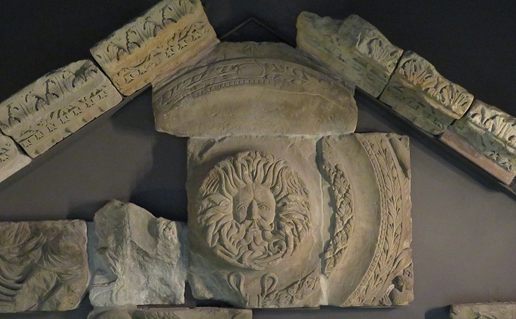 Front of the Temple to Sulis Minerva with an unusual Gorgon's Head; it resembles that of Oceanus in the Mildenhall Dish