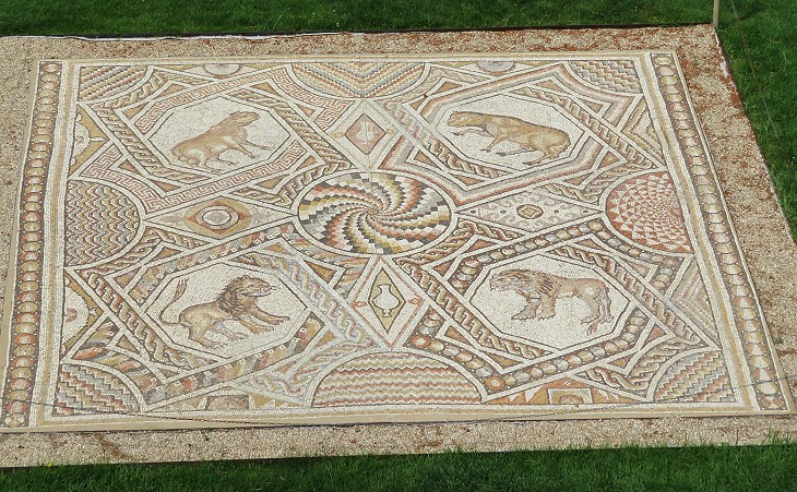 Geometric floor mosaics; the image used as background for this page shows another geometric mosaic