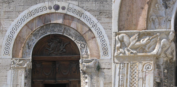 S. Michele Arcangelo: details of the portal; the angel is shown in the image used as background for this page
