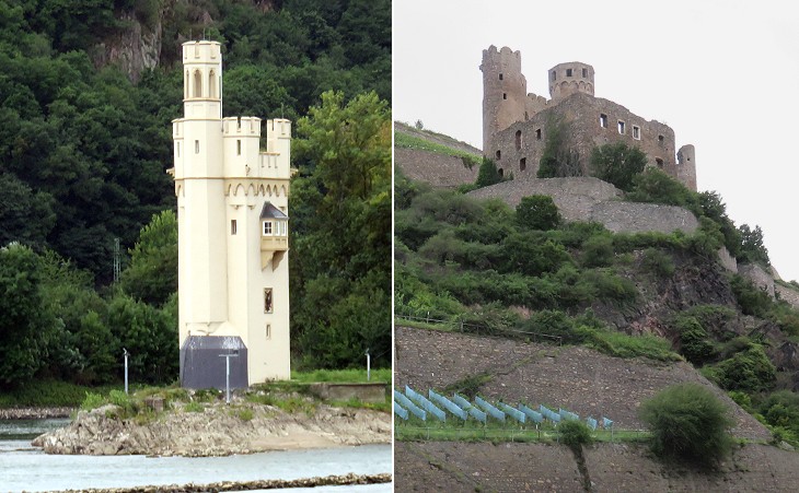 Bingen: (left) Mouse Tower; (right) Ehrenfels Castle