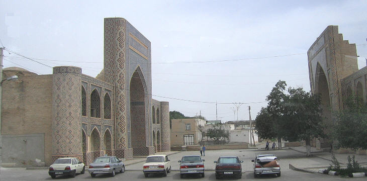 In the second half of the XVIth century Abdullah Khan II built two medrese facing each other. The exterior of both medrese was extensively restored in the 1950's and again more recently so they look "too new".