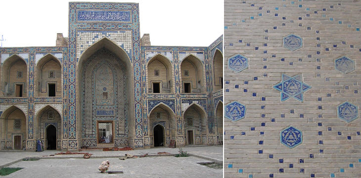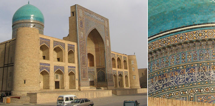 (left) Mir-i-Arab Medrese (XVIth century) (right) detail of a dome