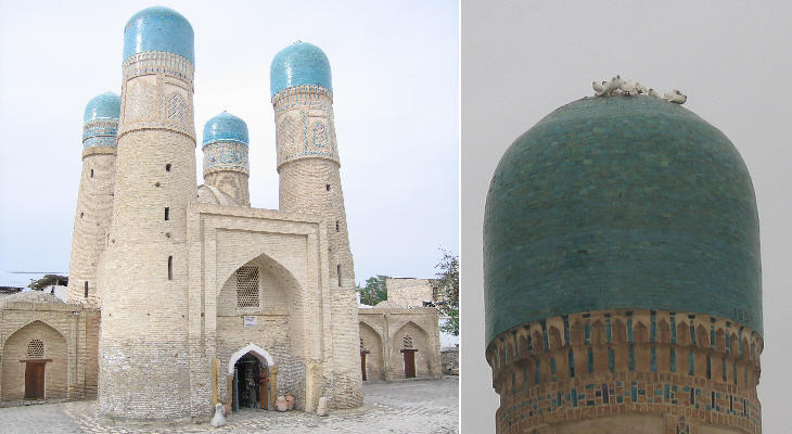 From a distance Tchor Minor (Four Minarets) has the appearance of an upside down stool; it was part of a lost 1589 medrese. The towers were never minarets and they had a merely decorative objective.