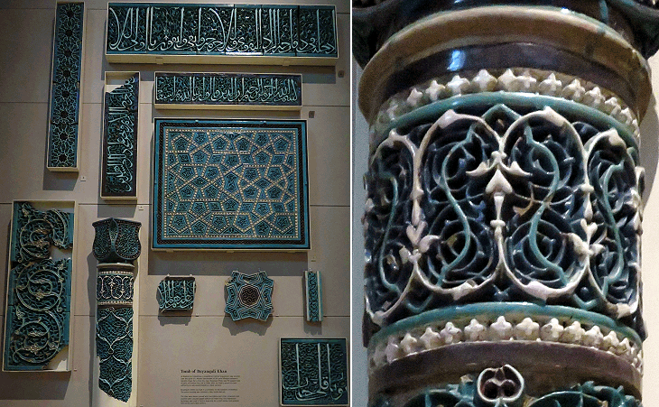 Victoria and Albert Museum in London: tile decoration from the Mausoleum of Buyanquli Khan, a Mongol ruler of the XIVth century in the outskirts of Bukhara
