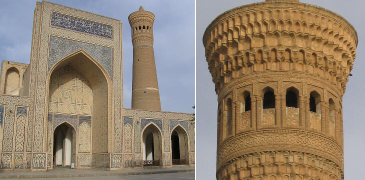 Kalon Mosque (eastern portal of the courtyard) and Kalon Minaret (XIIth century)