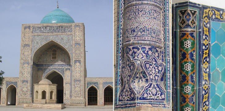The current mosque was built in 1514: the portal leading to its courtyard had the objective of showing the wealth and power of the Shaybanid dynasty.