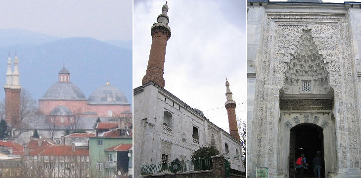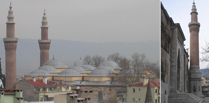 This large mosque was built by Sultan Bayezid I to celebrate his 1396 victory against a Christian army which tried to contain the Ottoman expansion in Europe. It was burnt down by Timur in 1402 and rebuilt a few years later: its central hall is covered by twenty domes supported by a grid of piers. Almost all of the domes collapsed during the 1855 earthquake.