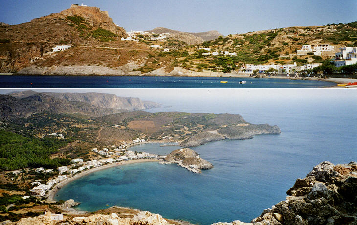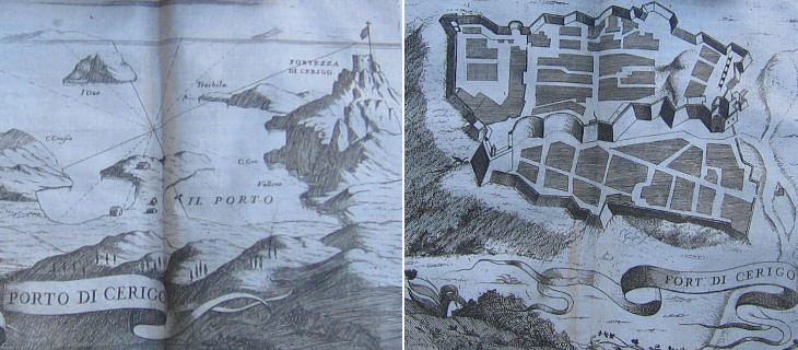View of the fortress (above) and of the harbour (below) of the town of Cerigo aka Kapsali