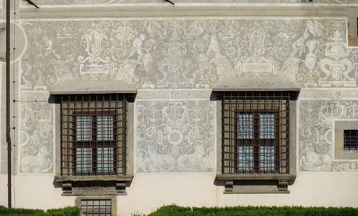 Graffito is a painting technique which was very popular in the XVIth century to decorate faēades of palaces (it was rarely used for churches). Palazzo alla Cannoniera retains the whole graffiti decoration of the rear faēade which was painted by Cristoforo Gherardi based on a plan designed by Giorgio Vasari. The two artists were involved also in the decoration of Oratorio del Gesł at Cortona. Today the palace houses the Civic Museum.