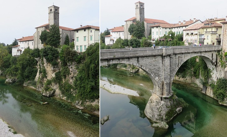 The choice of the site where Forum Iulii was founded was mainly due to its being naturally protected by a high cliff and by the river as a sort of wall and moat. A rock in the middle of the river bed was most likely already utilized by the Romans to support a timber bridge. A stone bridge was built in the XVIth century, but it was mined intentionally and blown up in 1917 and rebuilt in the following year. It owes its name to the tradition that its construction was made possible by the Devil in return of the soul of the first living creature crossing it. The inhabitants of Cividale used a dog to inaugurate the bridge and the Devil had to content himself with its soul.