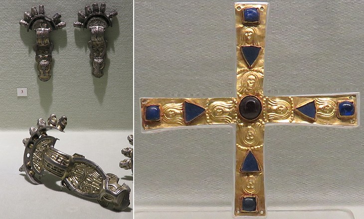 Museo Archeologico di Cividale: Longobard jewels: (left) brooches; (right) Cross of Gisulfo (VIIth century)