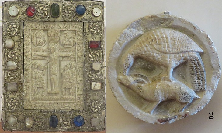Museo Archeologico: (left) Carolingian cover of a book of prayers (IXth century); (right) XIIIth century relief which most likely decorated the Palace of the Patriarchs at Cividale.