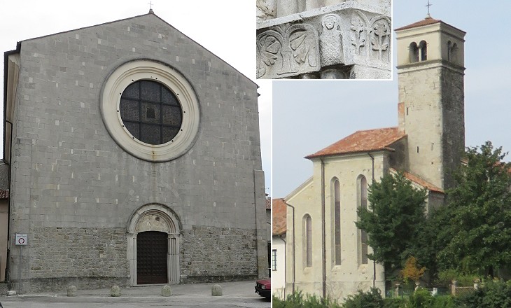 S. Francesco (1285): (left) façade; (right) apse and bell tower; (inset) detail of the portal