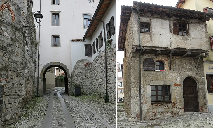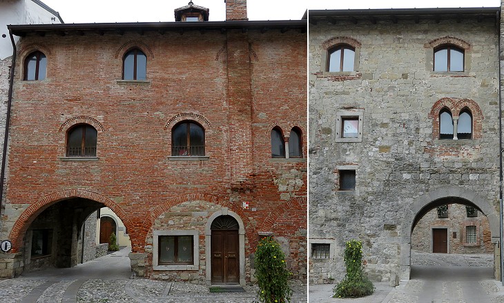 Today's aspect of Cividale is heavily influenced by the changes which occurred during Venetian rule and by some modernizations of the XIXth century, but the northern neighbourhood near SS. Pietro e Biagio and Porta Brossana retains many medieval buildings. One of them recalls Ottoman houses at Safranbolu, because it was built with stones (below) and timber (above) and the upper floor projects from the lower one.
