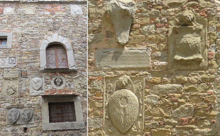 Palazzo Casali or Pretorio: coats of arms of the Florentine "Capitani del Popolo" or "Commissari"
