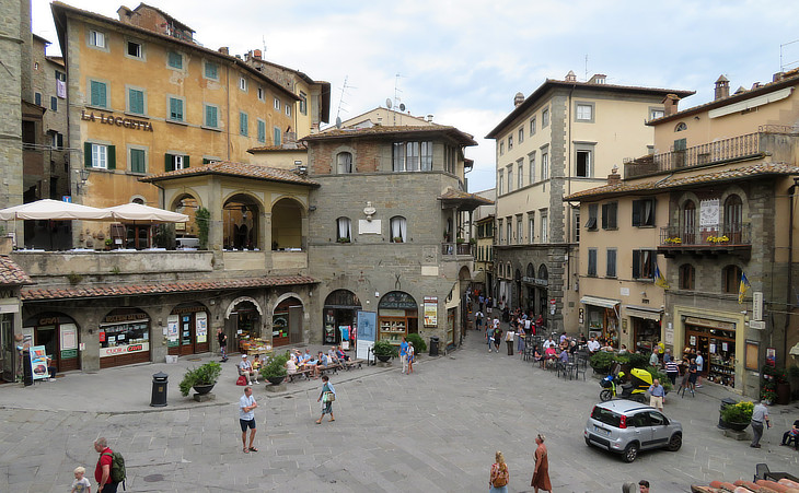 From the railway station it is half an hour's drive to the town, for the ascent is steep and toilsome. Nor when the gates are reached is the labour over. (..) If you would see Cortona, you have still a long climb to the upper end of the town; for Cortona is not spread over the summit of the mountain, but hangs suspended from its peak, down its western slope. Steep, winding, narrow and gloomy streets, sombre rather than shabby houses, here and there even showing traces of medieval grandeur this is Cortona. She has made progress during the past generation, and is no longer to be accused of filthy, ill-paved streets, nor of mean and squalid houses.