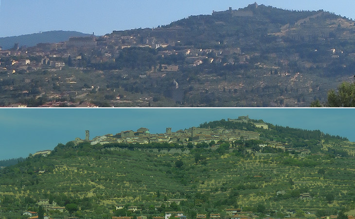 Views of Cortona from the south-west (above) and from the north-west (below)
