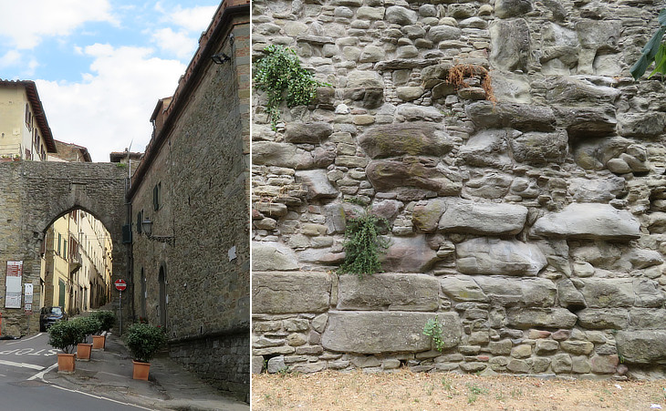 (left) Porta S. Maria; (right) nearby walls with evidence of Etruscan masonry